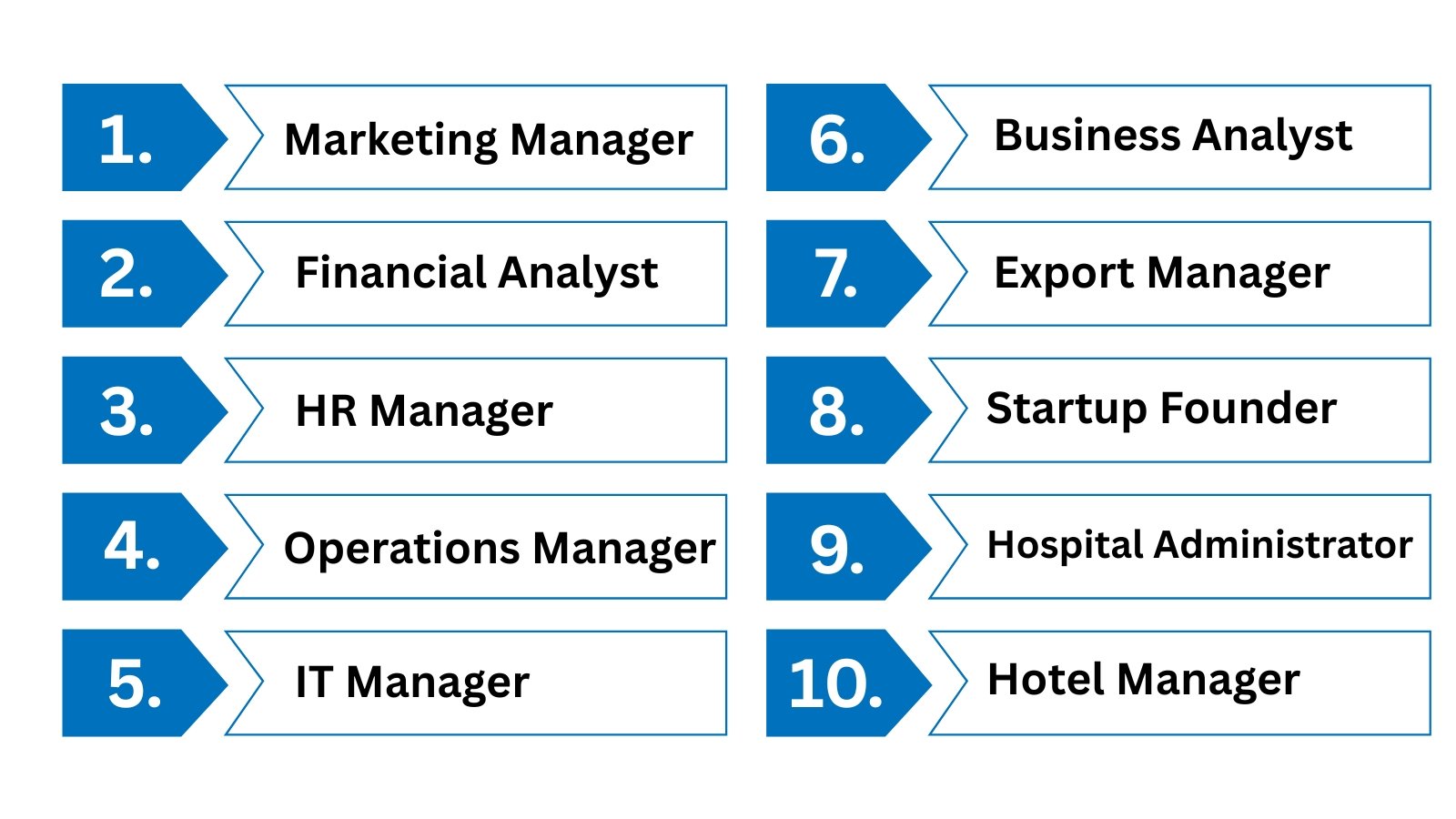- MBA students specialize in various areas, including Finance, Human Resources, and Marketing